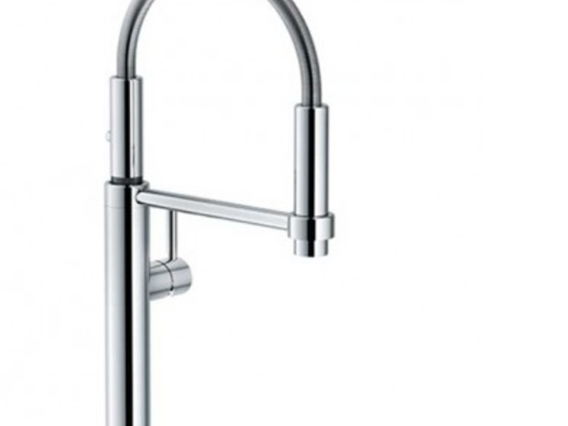 Grifería con caño giratorio, altura total 46 cms., rotación 360º y doble chorro. Acabado cromado, mando side lever.