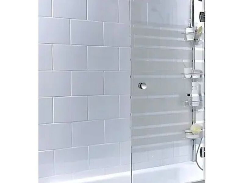 Serigrafia lineal 150x72, vidrio templado 6mm espesor, bisagras de acero inoxidable macizo, abre hacia ambos lados, tirador de plastico abs cromo.