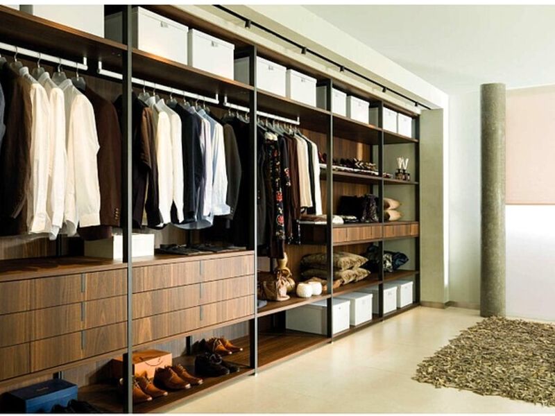 Las líneas rectas y la gran capacidad de los diferentes sectores de almacenaje definen el concepto de este vestidor de inspiración industrial, donde la funcionalidad juega un papel fundamental.