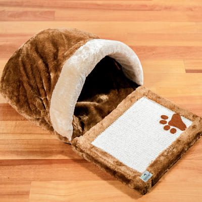 La cueva rascador es un accesorio para gatos que combina un área de rascar con una cueva acogedora. Ofrece superficies resistentes para afilar garras y un espacio cerrado para que los felinos se escondan o descansen, brindando funcionalidad y confort en un solo mueble.