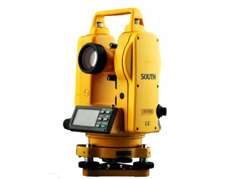 El Teodolito Digital Electrónico SOUTH ET-02, lectura electrónica en sus ángulos horizontal y vertical de 1 «, abertura del objetivo de 45 mm, aumentos del lente de 30x, imagen directa, plomada óptica o laser, dos pantallas de cristal líquido con 2 líneas de 8 dígitos, teclado, iluminación interna y adaptador para distanciómetro.