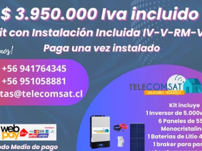 Nuevos KITS SOLARES MAS POTENTES Y TAMBIEN CON BATERIAS DE LITIO E INSTALACIÓN INCLUIDA (REGIONES IV-V-RM-VI) CONSULTA POR VALORES DE INSTALACIÓN EN OTRAS LOCALIDADES.