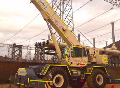 Grúa de alta resistencia, perfecta para levantar y mover estructuras y materiales pesados en sitios de construcción y plantas industriales.