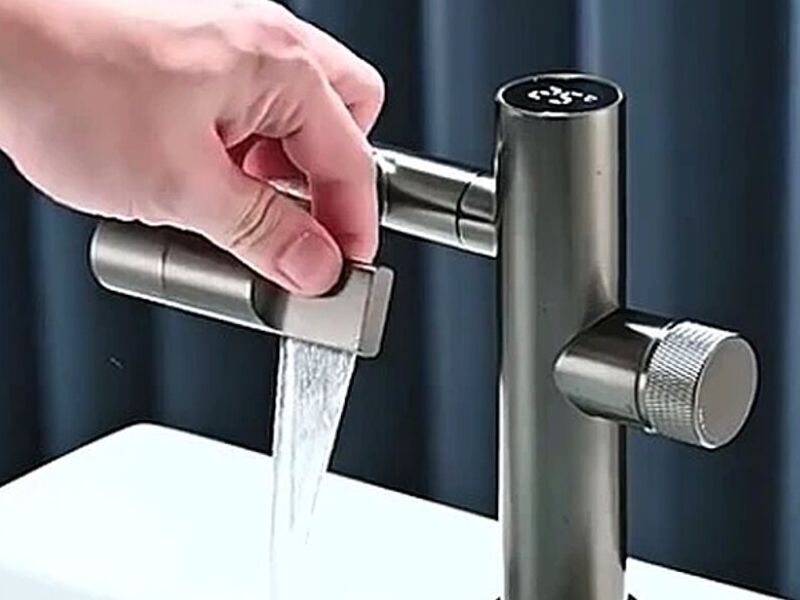 Grifería multifunción con panel digital que te indica la temperatura del agua y el tiempo de uso. El panel digital NO consume electricidad, funciona solo con el flujo del agua. Esta grifiería tiene la posibilidad de girarse dando la alternativa a que el agua salga de diferentes alturas y ángulos, especial para lavarse el pelo, tomar agua para enjuagarse la boca etc.
