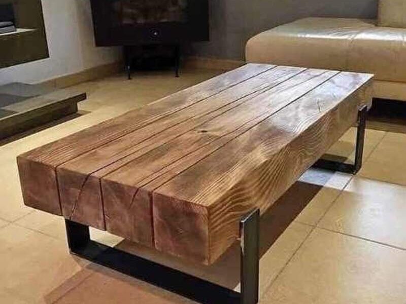 Mesa centro de roble Coigue , y estructura de acero negro. Vitrificado.
