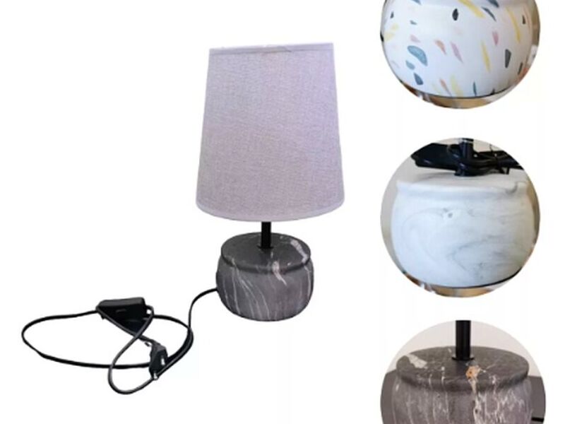 Esta lámpara presenta una base elegante de cerámica marmoleada con pantalla de polifan, que añade un toque de sofisticación a cualquier espacio. Su diseño combina la durabilidad de la cerámica con la estética única del mármol, creando una pieza decorativa y funcional para iluminar tu entorno con estilo, mientras que la pantalla de polifán añade un toque decorativo. Este material ligero permite una dispersión suave de la luz, creando un ambiente agradable. Ideal para espacios contemporáneos, esta lámpara fusiona estética y funcionalidad de manera armoniosa.