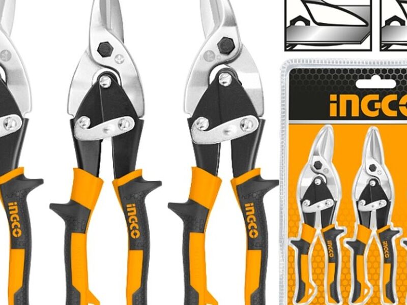 El conjunto de 3 tijeras para chapa INGCO HTSNK0110 es ideal para cortes precisos en metal y aluminio. Con asas suaves de dos tonos para mayor comodidad. Perfectas para proyectos de chapa y metal.