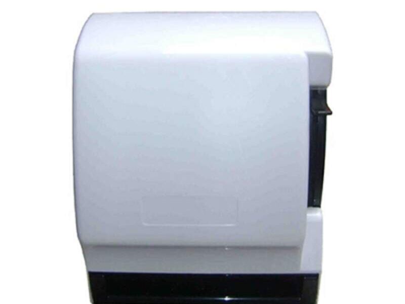 De alta calidad y diseño elegante, cuenta con una capacidad de rollos de hasta 350 mts. Tiene una palanca de empuje en la parte derecha.