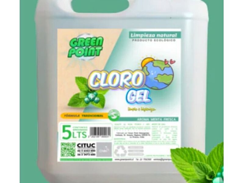 Cloro gel, producto higienizante fabricado a base de hipoclorito de sodio y tensoactivos, recomendado para su uso en todo tipo de superficies lavables, artefactos, vajillas, cubiertos, cristalería y todo tipo de utensilios que requieran una limpieza de cocina que sean lavables, dejando una agradable aroma a menta. Por sus características de biodegradabilidad es apto para lavar follaje de árboles frutales.