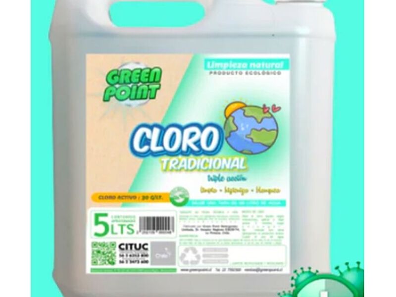 Cloro triple acción, producto que limpia, blanquea e higieniza en una sola operación, fabricado a base de hipoclorito de sodio y no contiene Dicromato de Sodio, que es un colorante dañino para la salud. Recomendado para su uso en todo tipo de vajillas, cubiertos, cristalería y todo tipo de utensilios de cocina y ropas y telas blancas en general, que sean lavables, dejando un agradable.