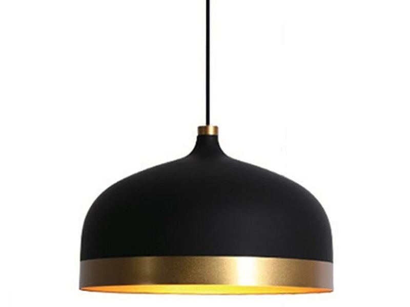 La Lámpara colgante Bali Negra, es una luminaria de aluminio con detalles en color dorado. Ideal para ambientar con modernidad y diseño cualquier espacio de tu hogar u oficina.