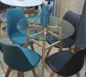 Silla plástica moderna de color vibrante y diseño ergonómico.