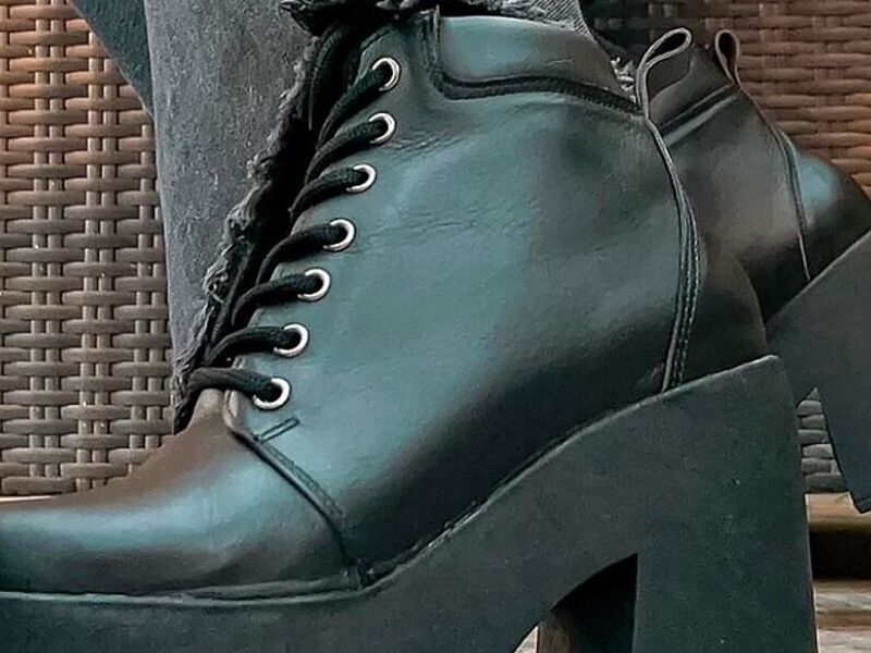 Botín con una plataforma de 12 cm hecho de cuero por dentro y por fuera