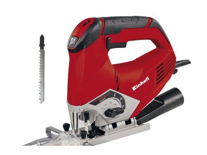 La caladora es un potente modelo para llevar a cabo trabajos exigentes de serrado en cualquier material. Su carrera pendular regulable en 4 posiciones y la regulación electrónica del número de carreras permiten trabajar el material de forma individualizada. El cambio de hoja de sierra sin necesidad de herramientas permite el uso de hojas de sierra con eje T y eje U, además de ahorrar un tiempo valioso. Con su suave empuñadura ergonómica, la TE-JS 100 se sujeta perfectamente en la mano. La sólida base de la sierra realizada en aluminio, también regulable sin necesidad de herramientas e igual de resistente, resalta las exigencias de la máquina en cuanto a la calidad y, además, se puede inclinar permitiendo ángulos de sesgado de hasta 45º. Su efectiva protección contra el desgarre de virutas garantiza una óptima calidad de la superficie. Con una luz LED integrada y una pantalla abatible transparente se mantiene en todo momento una buena y segura visión del material de trabajo, mientras que el tope paralelo permite serrar de manera controlada y precisa. Con la correspondiente hoja de sierra para madera se puede empezar el trabajo de inmediato. La función opcional de soplado de polvo, así como la posible aspiración de polvo mediante un adaptador garantizan orden y limpieza. En su práctico maletín de transporte y almacenamiento, se puede guardar la TE-JS 100 de manera ordenada y segura.