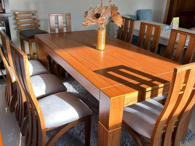 El Comedor Seike combina elegancia y funcionalidad en cada detalle. Confeccionado con madera maciza de parota, este conjunto ofrece un diseño contemporáneo que se adapta perfectamente a cualquier espacio interior. La mesa robusta y las sillas ergonómicas están diseñadas para proporcionar confort y durabilidad, convirtiéndolo en el centro ideal para compartir momentos memorables en familia o con amigos.