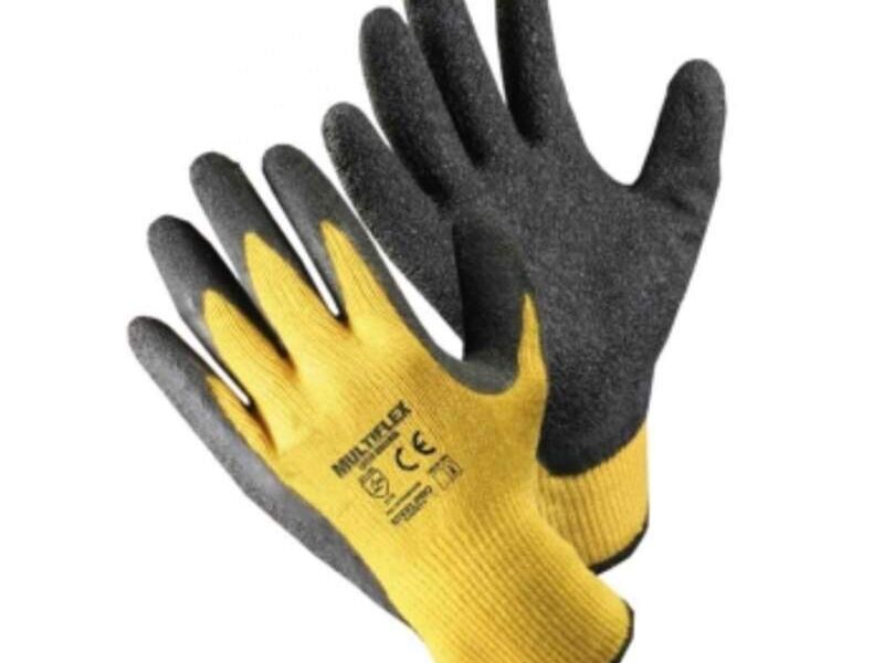 Guante de alta dexteridad para trabajos abrasivos, hecho de poliester 10G, con palma de latex rugoso, el latex proporciona una buena resistencia en trabajos de alta abrasión