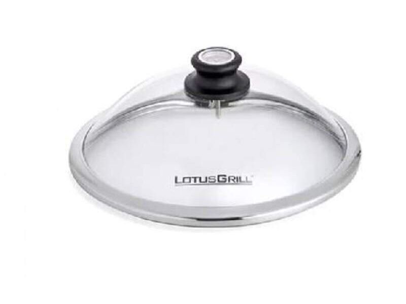 Tapa de vidrio para la parrilla Lotus Grill tamaño normal. Desarrollada con vidrio de seguridad e incorpora un termómetro de fácil lectura. Para hornear, asar, cocer a alta o baja temperatura, o simplemente mantener los alimentos calientes.