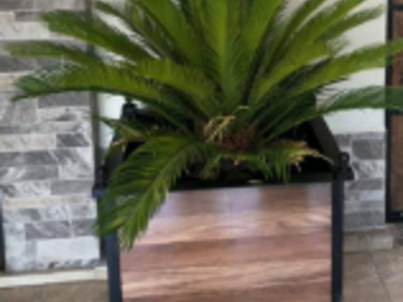 Recipiente espacioso para plantas grandes destinado para exteriores. Puede estar hecho de materiales resistentes a la intemperie.