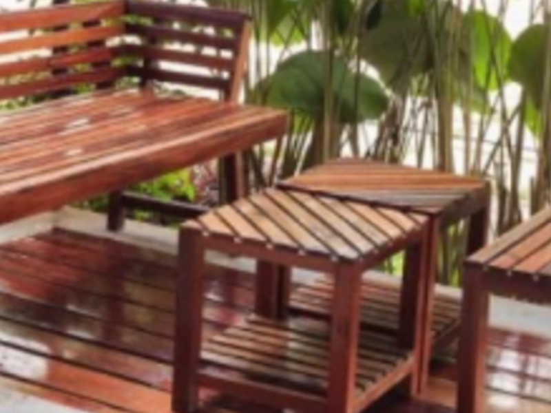 Conjunto de muebles de jardín, posiblemente con sofás, sillones y mesa baja. Diseñado para proporcionar comodidad y estilo en exteriores.