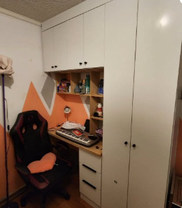 Closet de madera clara con puertas corredizas y espejo, ideal para una habitación contemporánea.