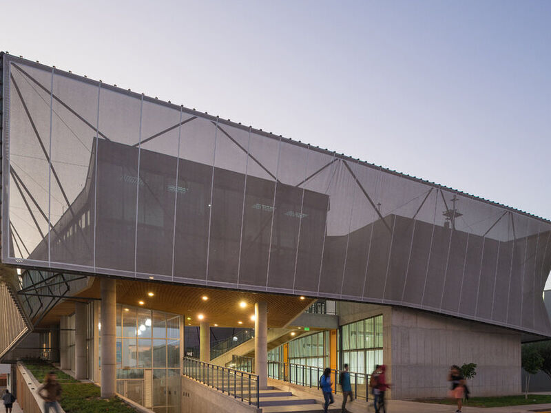 El medio ambiente en el llano al pie del Morro, donde se emplaza el proyecto de Laboratorios de Física, se caracteriza por ser un clima templado y de abundante niebla matinal, debiendo mitigar la alta radiación del medio día y el polvo en suspensión que traen los vientos oceánicos del suroeste al atardecer. En ese sentido, la idea de “envolver” el edificio con una malla textil (inspirada en la solución de esteras del mercado El Agro), tiene múltiples propósitos ambientales: proteger a los usuarios y sus equipos de la radiación y el polvo, moderar la temperatura conservando la humedad en la masa de hormigón; pero también culturales al hacerse cargo del etos local a través de una “arquitectura apropiada”.