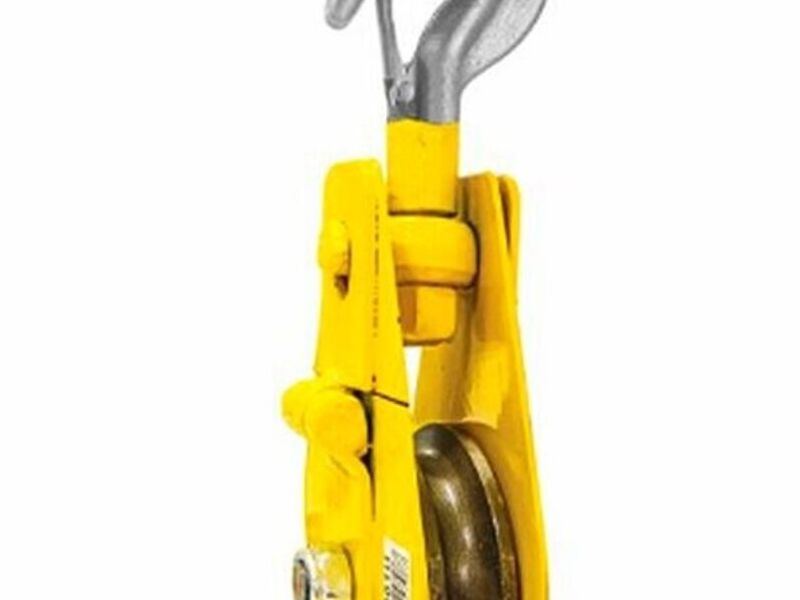 Las poleas, también conocidas como bloques de polea, se utilizan para cambiar la dirección de la fuerza de izaje y proporcionar ventajas mecánicas. Pueden ser simples o dobles, y suelen montarse en vigas o estructuras para facilitar el levantamiento de cargas en ángulos.