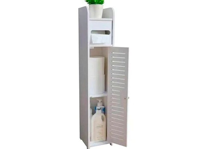 Optimiza tu espacio de baño con este organizador blanco. Con almacenamiento versátil, incluyendo estantes y puertas, es perfecto para mantener tus artículos de tocador ordenados. Incluye estantes internos bien ajustados y está fabricado con tablero de espuma de PVC, asegurando durabilidad y resistencia al agua.
