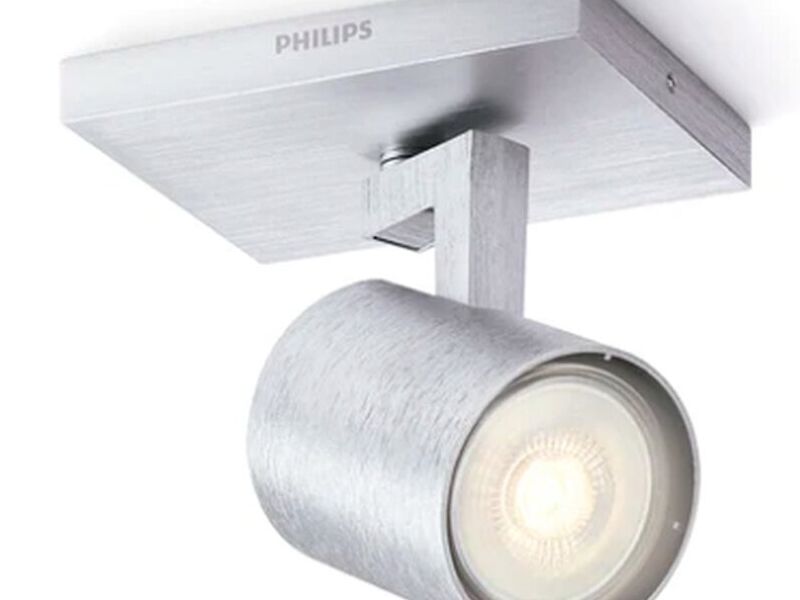 Elegante apliqué de techo Philips, modelo Runner, color Gris de 1 Spot. Es compatible con ampolletas GU10 estándar de hasta 50 Watts por Spot, y también ampolletas LED, ampolleta no incluída.
