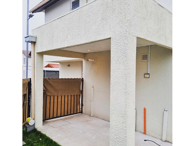 Proyecto mediterránea terminado en la comuna de San bernardo! Estructura 100% de metalcon, revestimiento exterior con fibrocemento de 5mm de espesor revestida con pintura texturizada, aislación térmica de fibra de vidrio, cielo de plancha de volcanita y molduras de terminación. Cubierta estilo mediterráneo de zinc, canaletas y forros de hojalateria