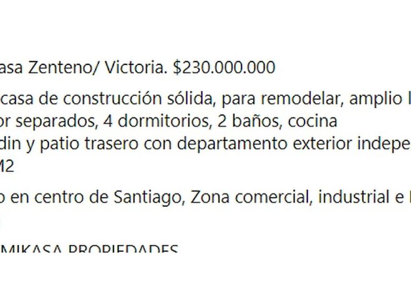 Venta casa Zenteno/ Victoria. $230.000.000