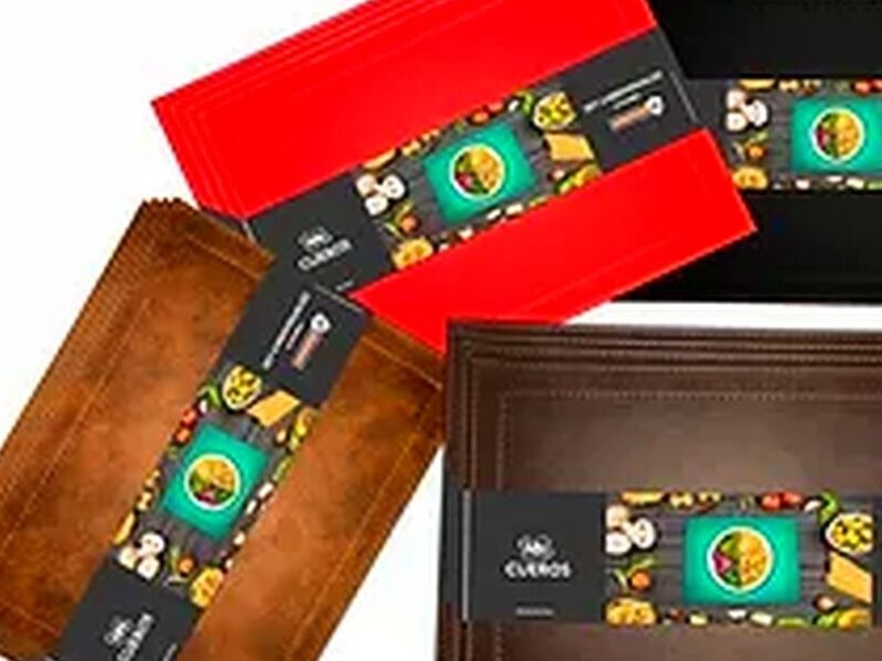 Elaborados con material eco cuero, cosidos con hilo color cobre y dimensiones de 42x32cm.