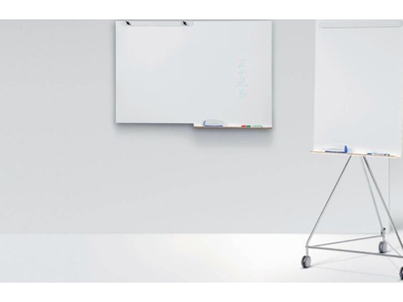 Pizarra para aulas o salas de reuniones. En la de pie su aspecto high tech conjugado con la superficie de madera aplacada tiene un resultado apto para cualquier ambiente. Para optimizar su uso y transporte permite el plegado en un espacio mínimo, y es regulable en altura. En la versión mural, la esbeltez de su tablero logra un gran efecto estético.