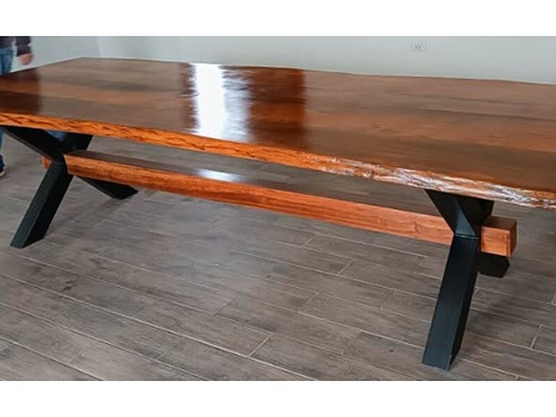 Madera de Tineo, color maderado con base metálica negra