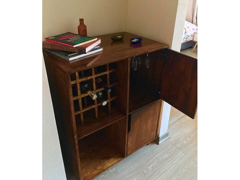 Añade calidez y encanto a tu hogar con este mueble bar rústico, ideal para crear un ambiente acogedor y natural.
