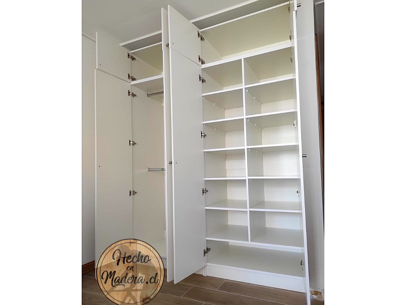 Nuestro clóset en color blanco presenta un diseño contemporáneo y funcional, ideal para organizar su ropa y accesorios de manera eficiente. Fabricado con materiales de alta calidad, garantiza durabilidad y resistencia. Su tonalidad clara aporta luminosidad al espacio, creando un ambiente fresco y acogedor en su dormitorio.