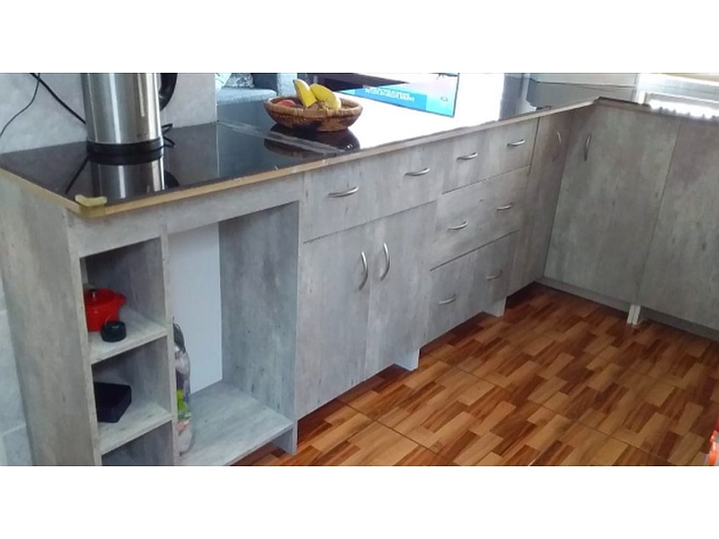 Nuestro mueble de cocina gris está diseñado para la parte baja, ofreciendo funcionalidad y estilo en su espacio culinario. Fabricado con materiales de alta calidad, garantiza durabilidad y resistencia, proporcionando un amplio almacenamiento para utensilios y alimentos. Su acabado en gris moderno no solo optimiza el espacio, sino que también aporta un toque elegante y contemporáneo, creando un ambiente acogedor y eficiente en su cocina.