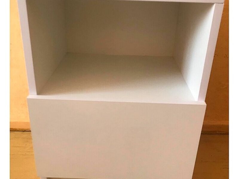 Velador en melamina blanca ( de excelente calidad ) de 48cm de altura x 35cm de ancho y 33cm de fondo.