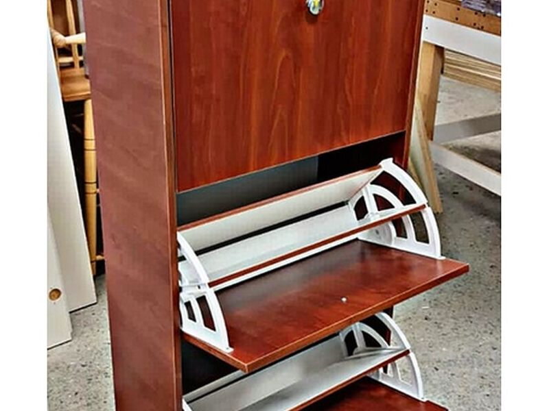 Zapatera en color Blanco Y Marrón.