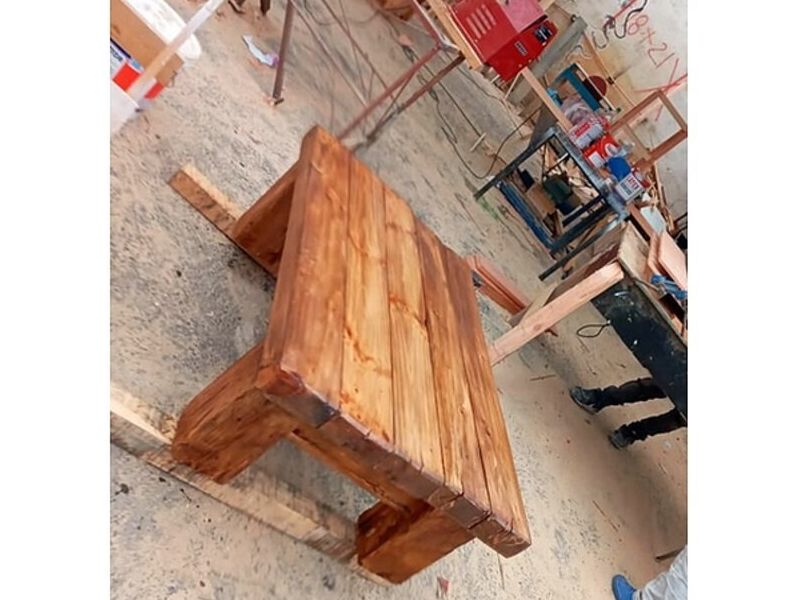 Mesa de centro en madera rústica. Es resistente y duradera, diseñada para soportar el uso diario y proporcionar una superficie estable para colocar libros, revistas, decoraciones u otros objetos.