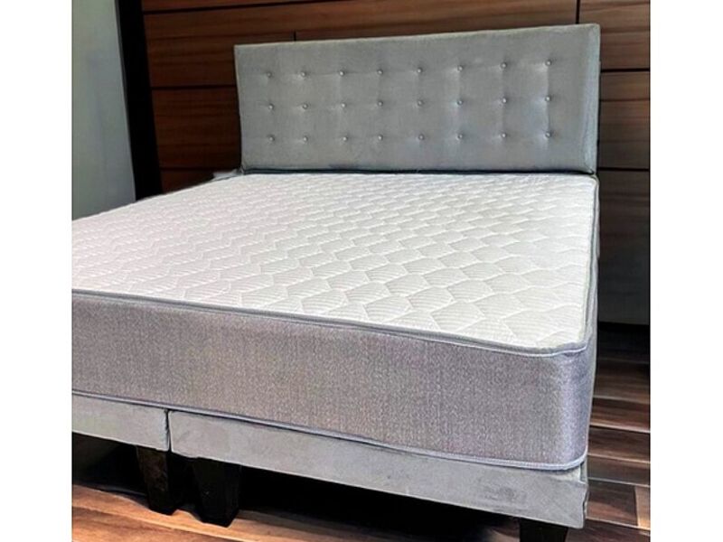 Base respaldo y colchón de resorte de 27 cm de espesor.