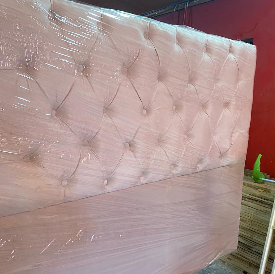 Cabecera de diseño capitoné en tono beige, perfecta para una decoración neutra.