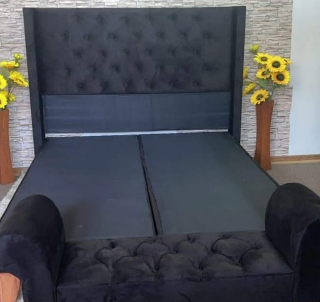 Cabecera acolchonada en gris oscuro, ideal para un toque de sobriedad y estilo.