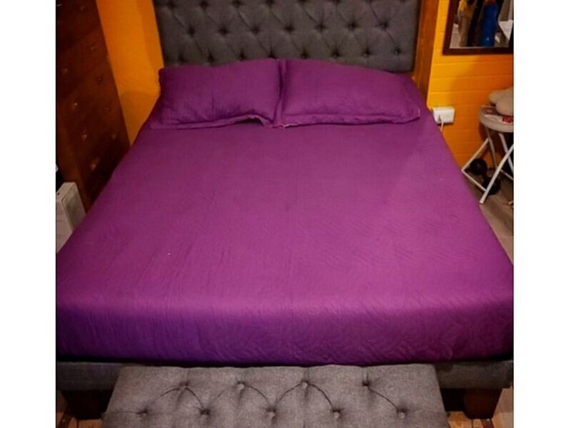 Cama Dos Plazas en Lino color morado.