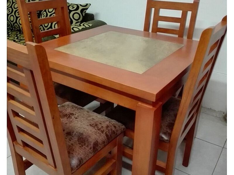 Comedor de cuatro sillas, medidas 90 x90, con cubierta de porcelanato.
