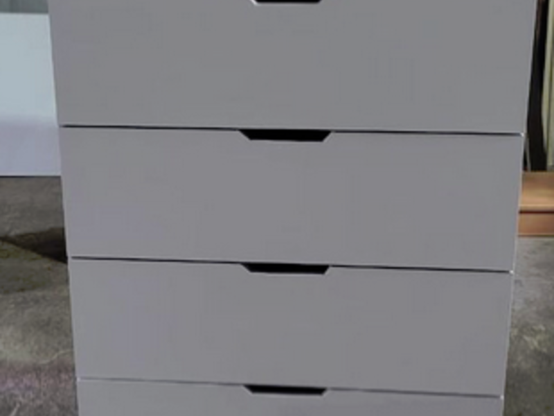 cómoda simple de color blanco-coigue con 4 cajones es un mueble práctico y decorativo que ofrece una solución efectiva para el almacenamiento organizado en el hogar, combinando funcionalidad con un diseño atractivo y adaptable.