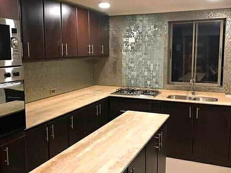 Una cocina en tono chocolate presenta un diseño elegante y cálido, con acabados en tonos oscuros que aportan un toque de sofisticación al espacio.