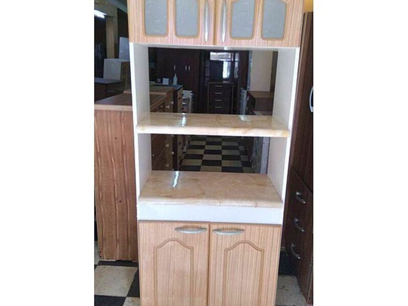 Mueble microondas en color café claro.