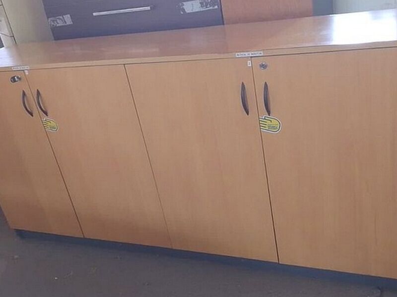 Mueble bajo 4 puertas, con repisa. En melamina color café.