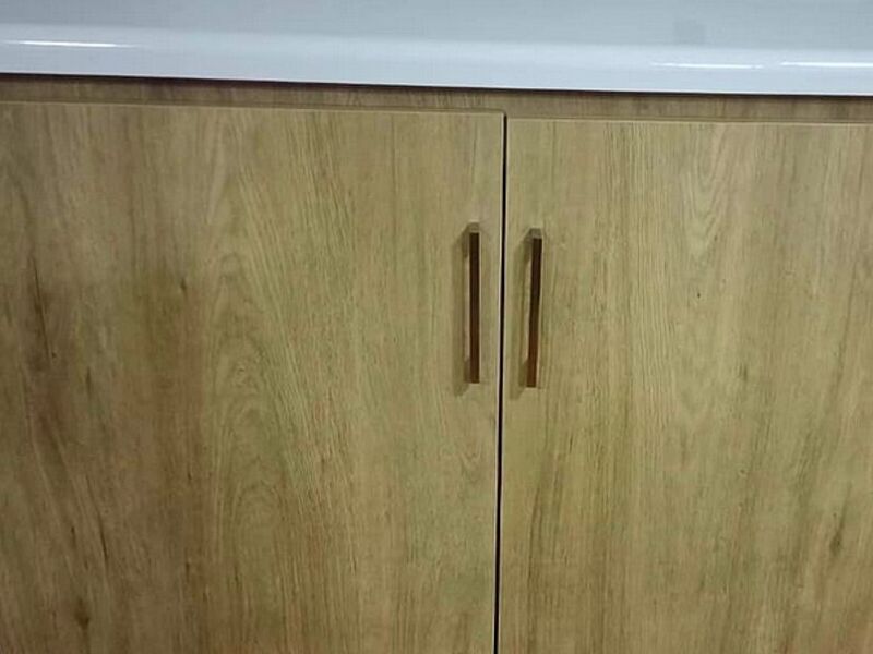 Mueble de cocina con encimera en marmol blanco.