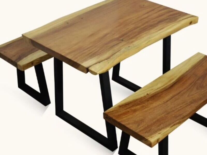 Mesa de madera teca con patas de metal muy resistentes ideal para tu llenar tus espacios y aprovecharlos, creando rincones atractivos, versátiles, especiales y que den pie a experiencias unicas.